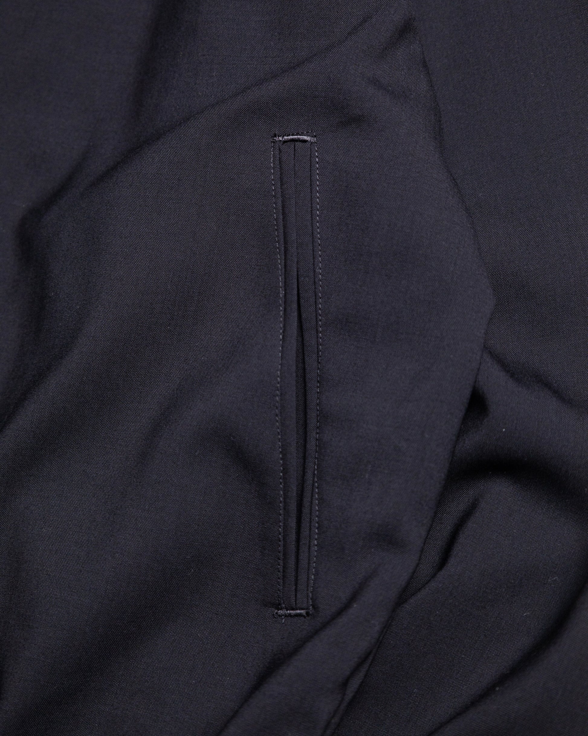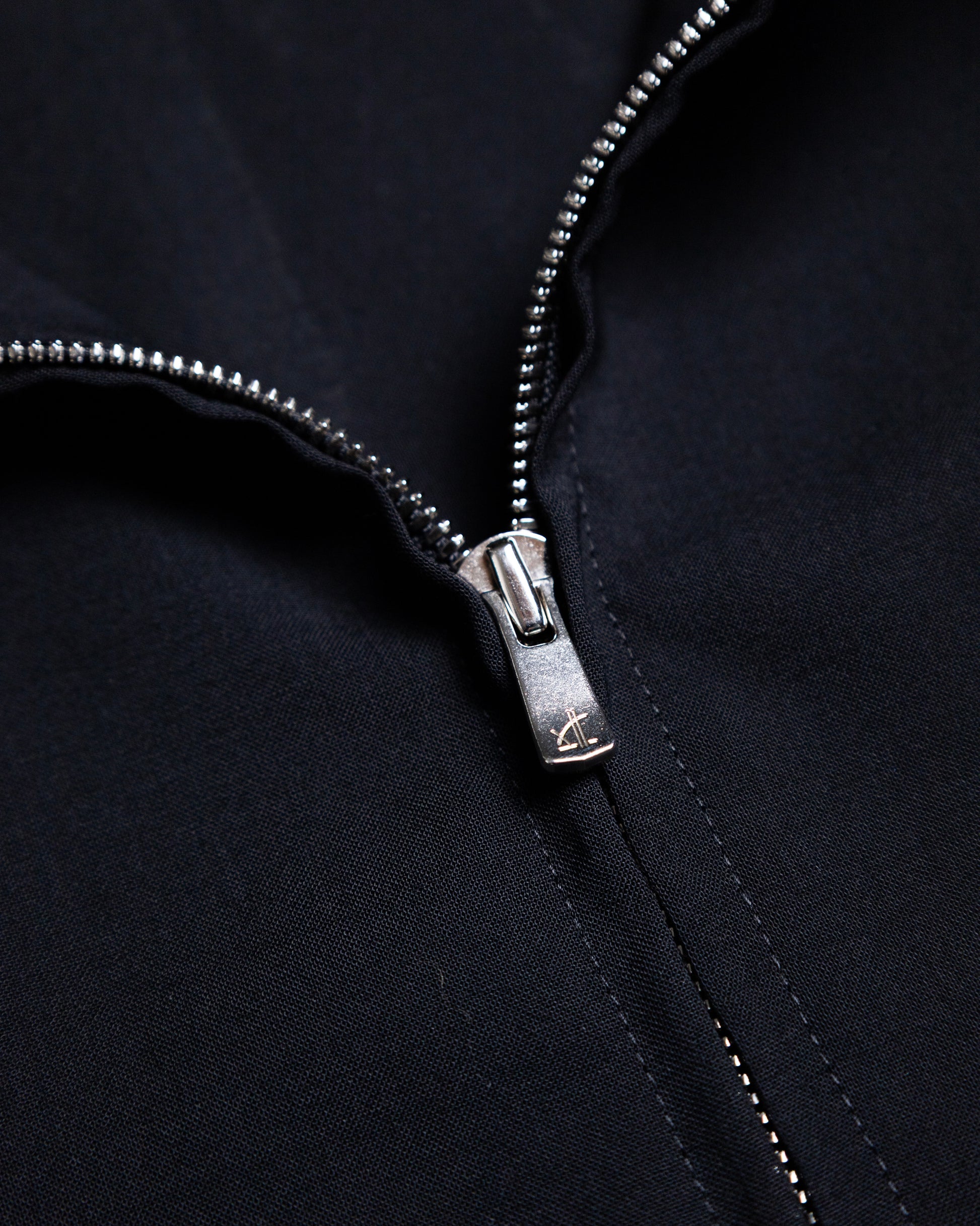 愛知県津市で100年以上高級フォーマルメーカーとして高い品質を保証している機屋にて作成したウールギャバ。マイクロンが細く長いSuper120’ウール原料の糸を表面を揃え滑らかにし、仕上げの特殊加工で、張りコシに加え独特な反発感を加えた素材です。強撚した糸は肌離れが良く、清涼感のあるウール素材。裏地無しで若干の透け感が出るウールギャバ。インナーとのレイヤードを楽しんでいただきたいジップブルゾン。