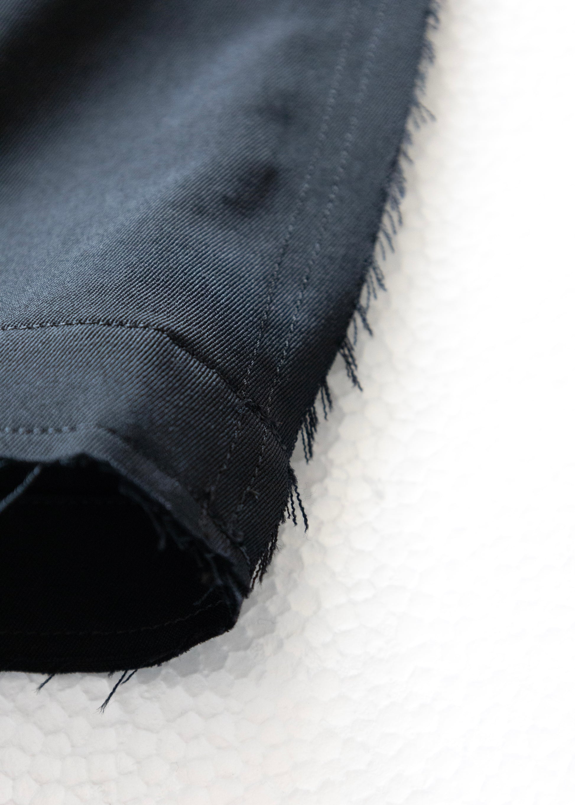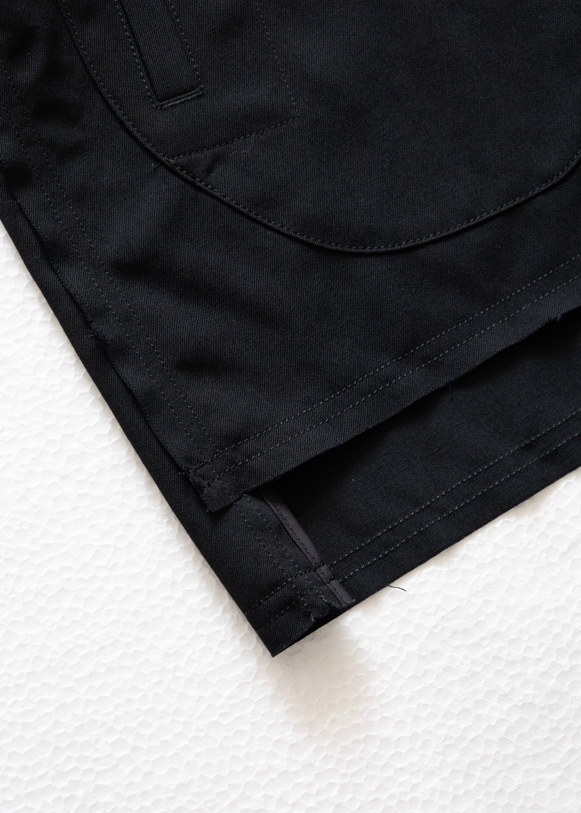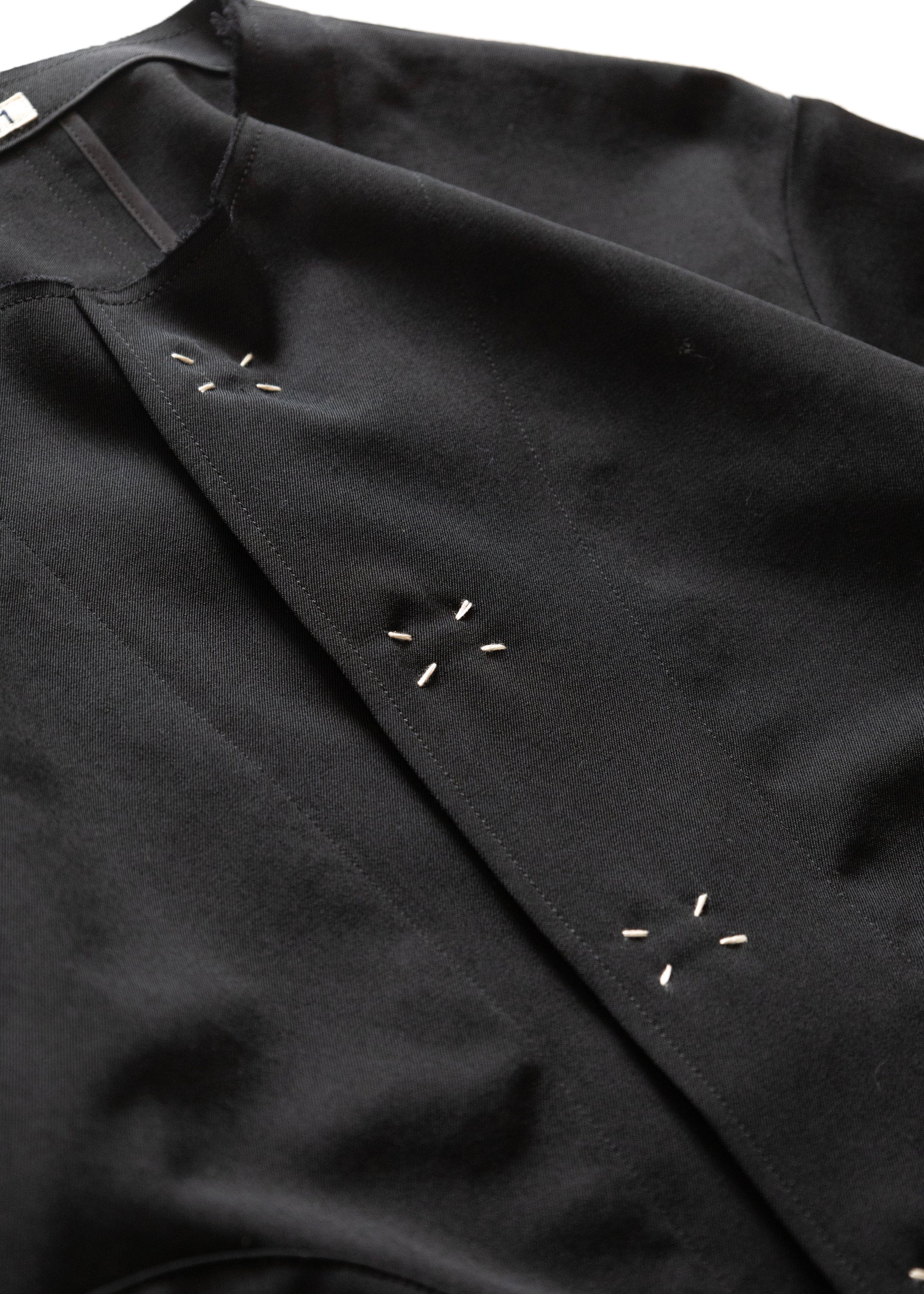 KHOKI 定番の形であるノーカラージャケット。ウールギャバジンを使用したセットアップ品番。程よい綾目としっかりとした織り糸の打ち込みが特徴。