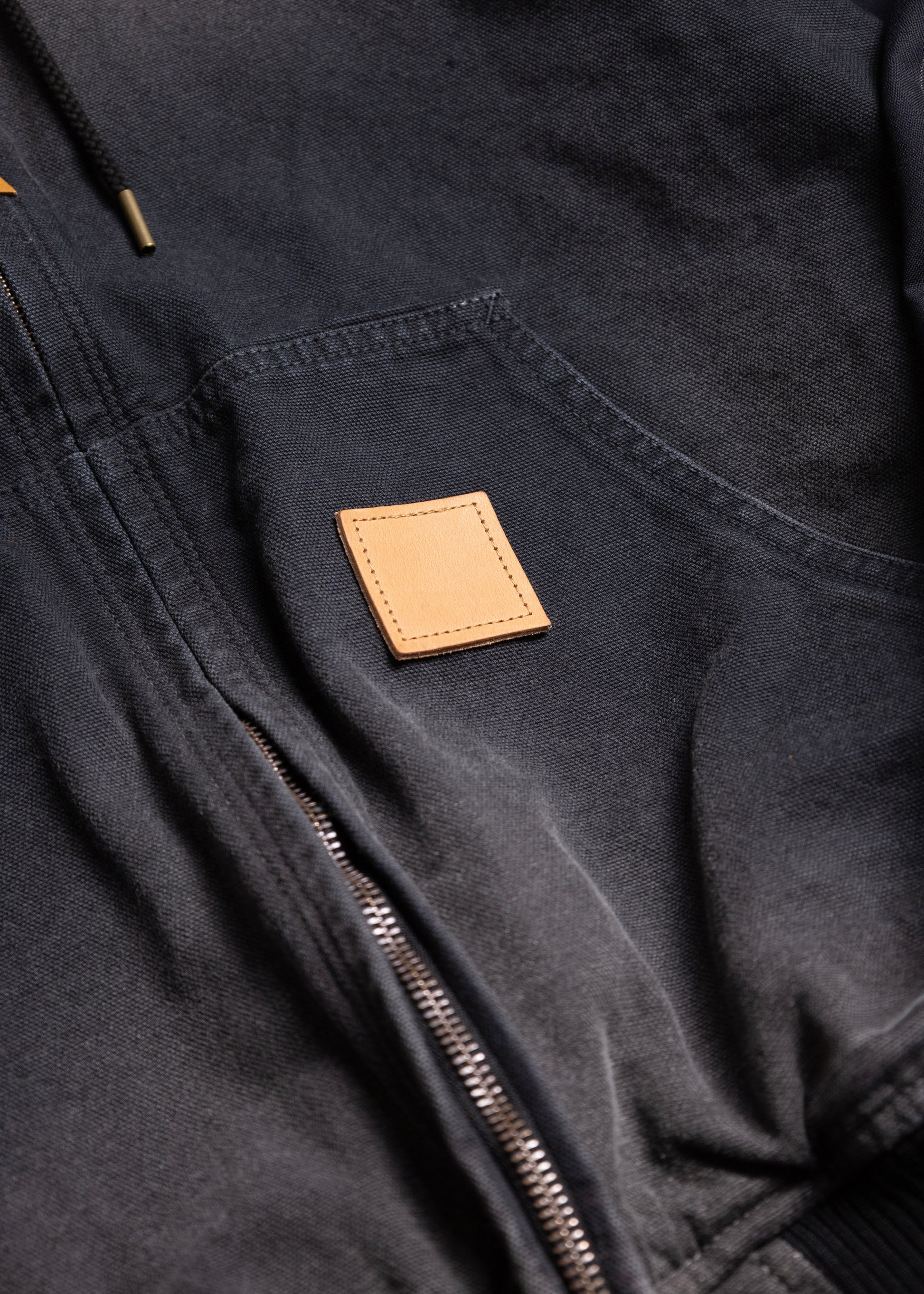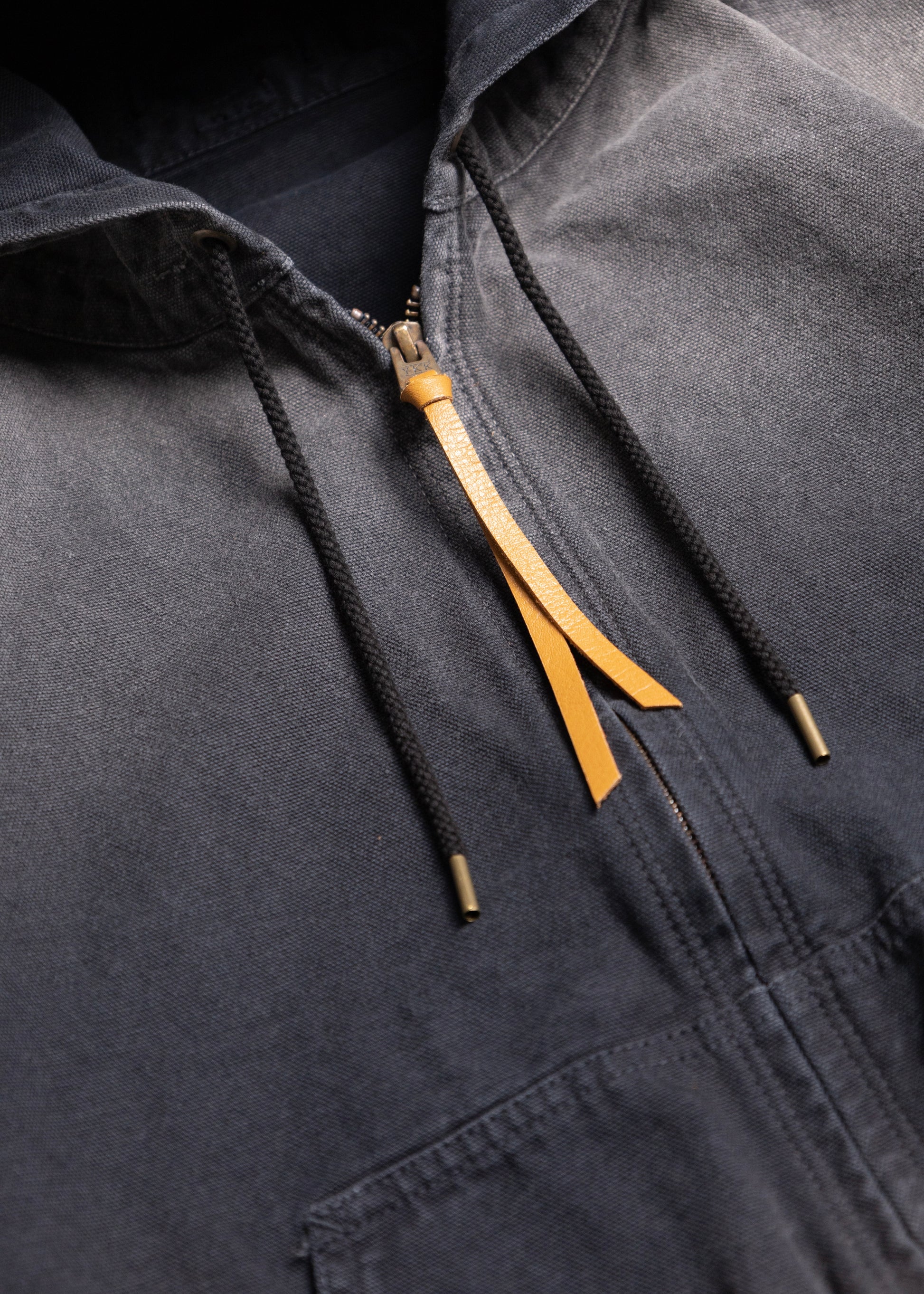 加工工程は見頃のワークウェアパーツのみを染め、手作業で色落とし処理を行っています。
