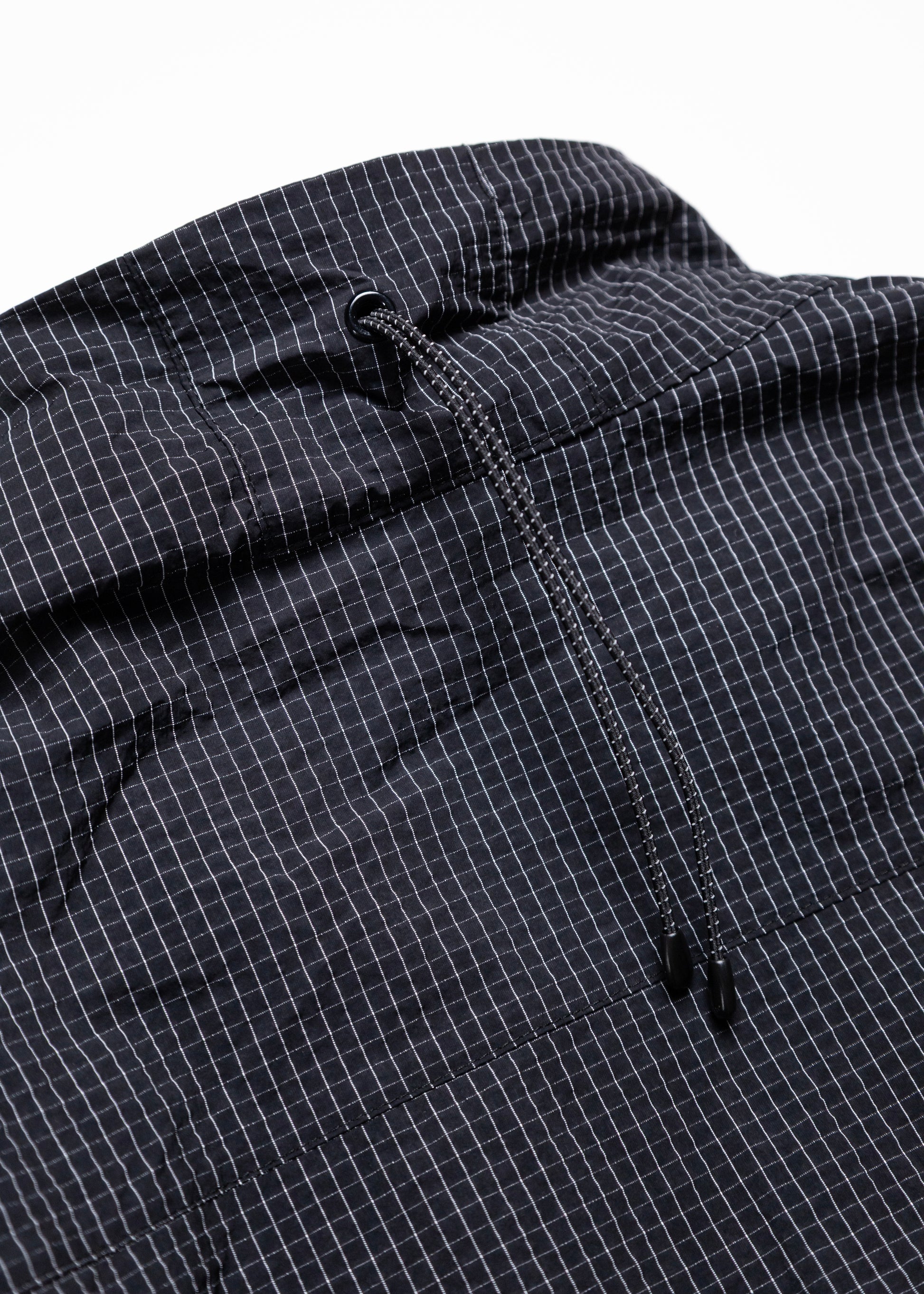取り外せばスタンドカラーのアイテムに変化し、襟後ろもドローコードでフィット感を調整出来て、スタイリングの幅を広げてくれるアイテムです。