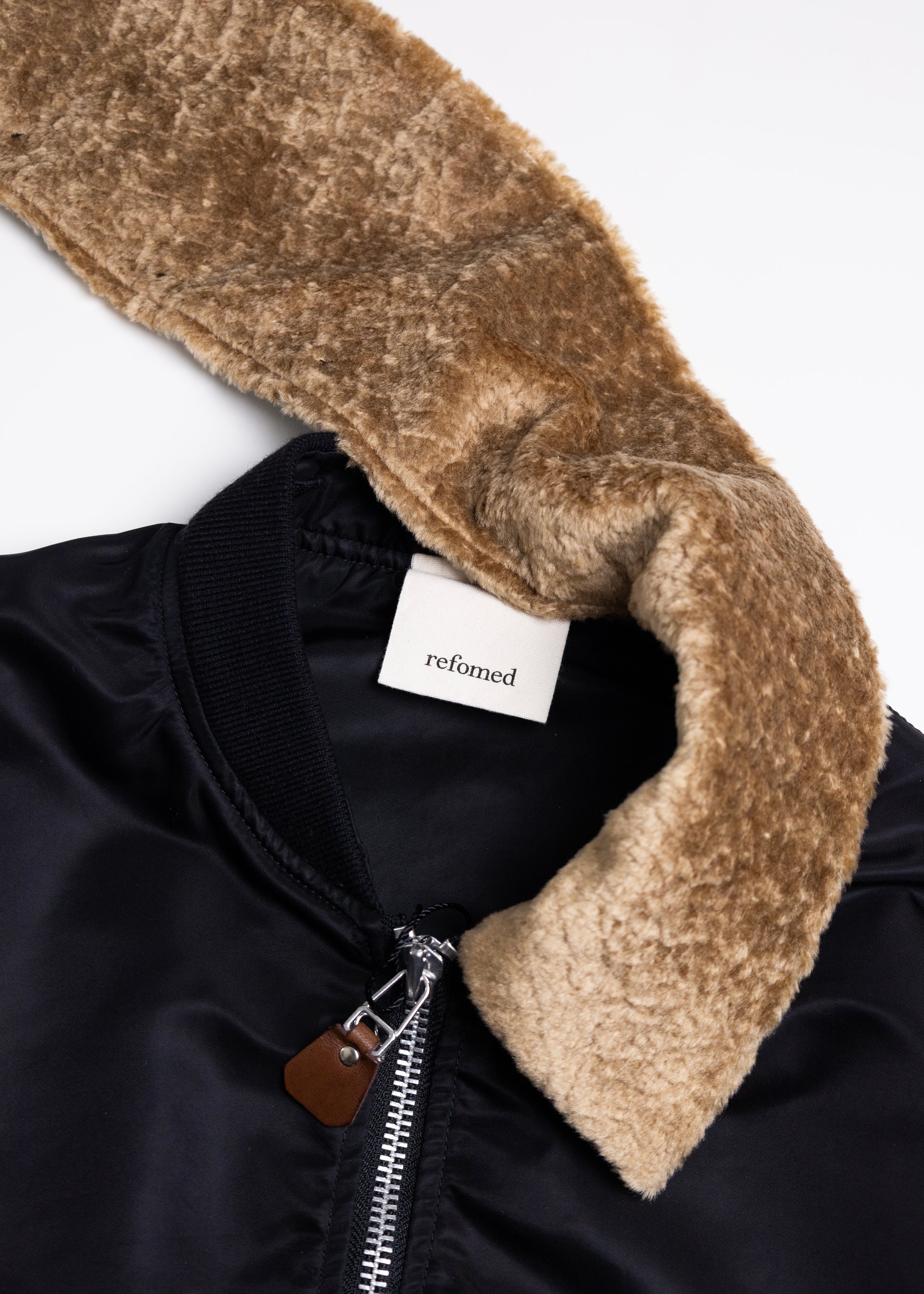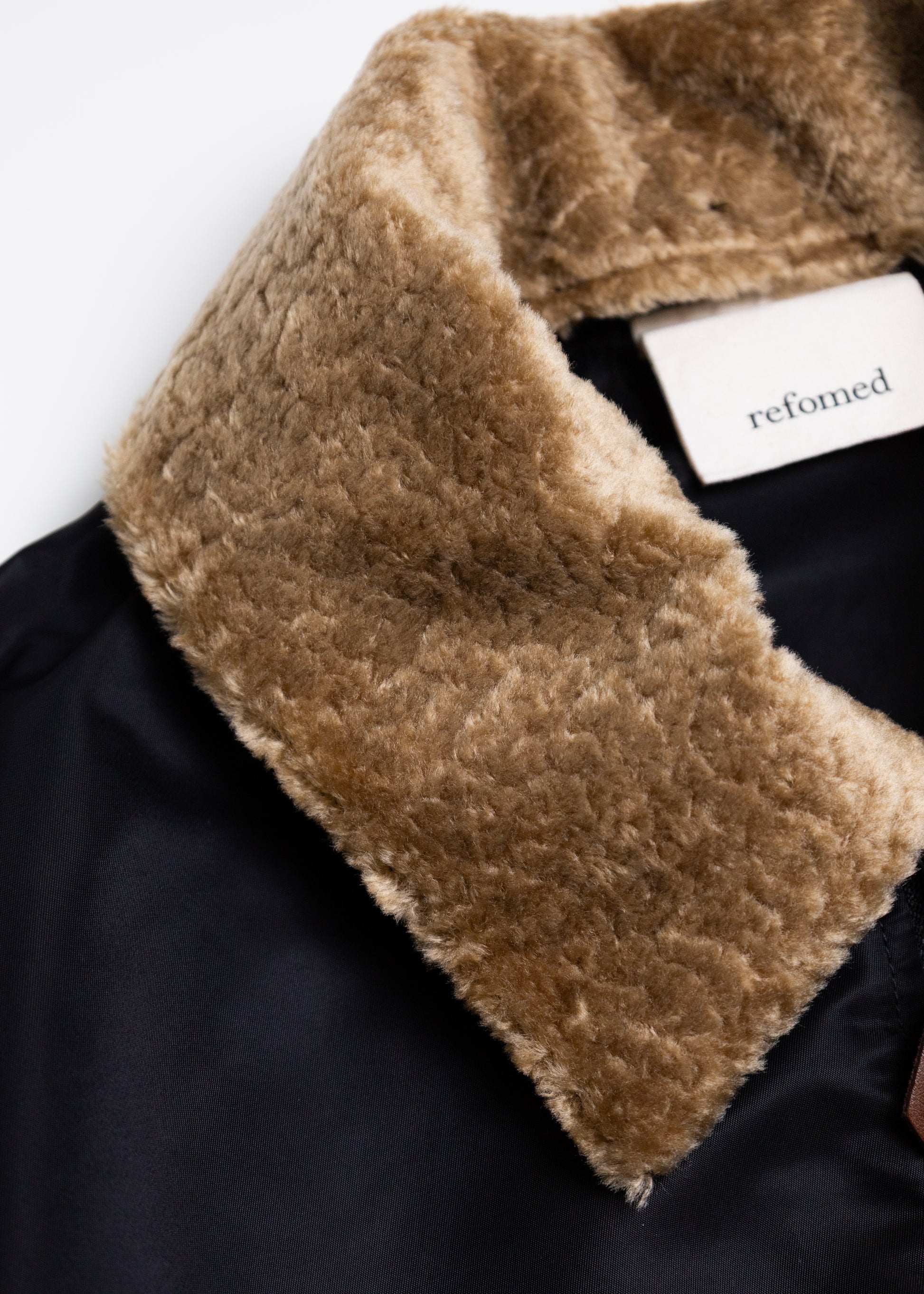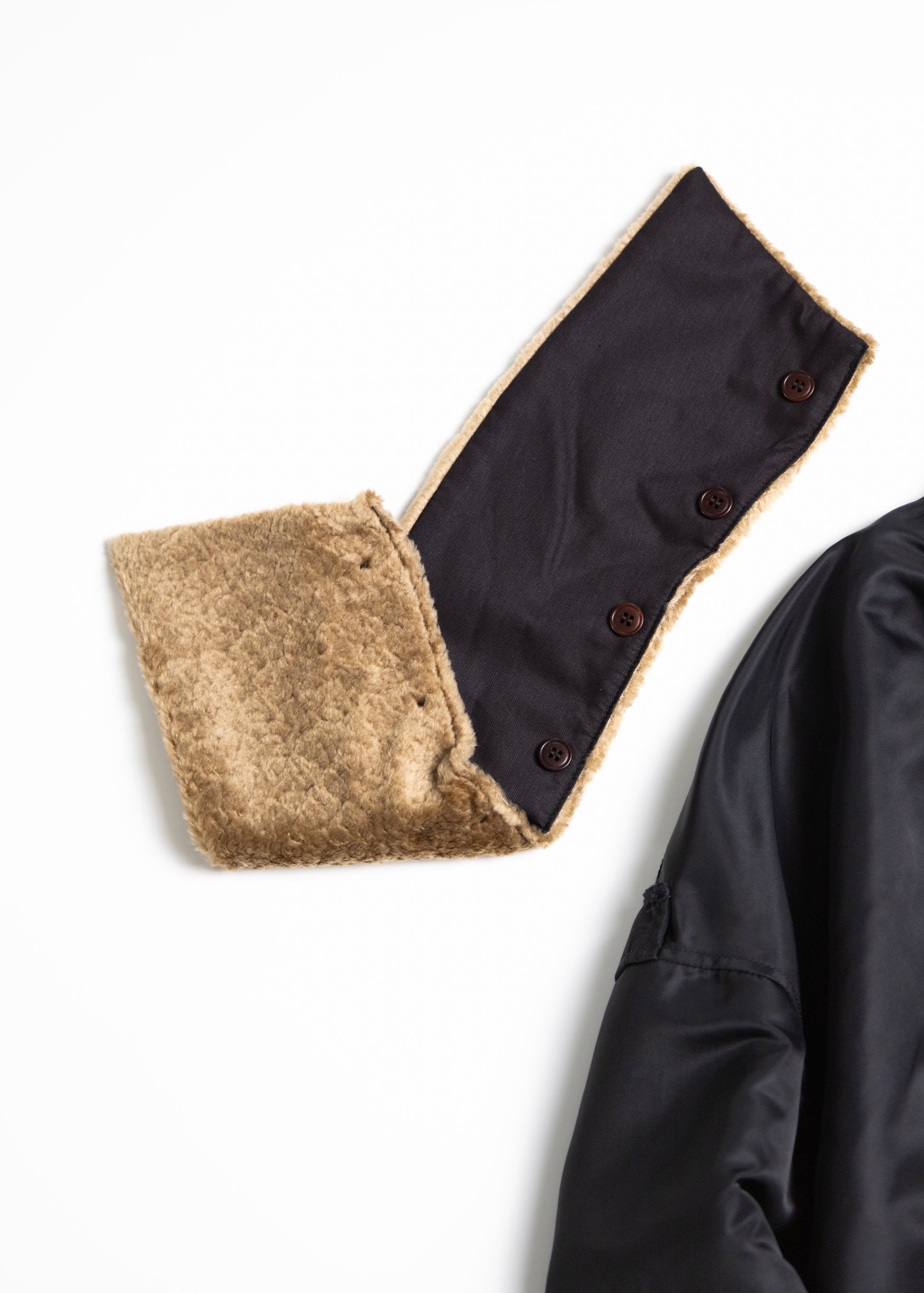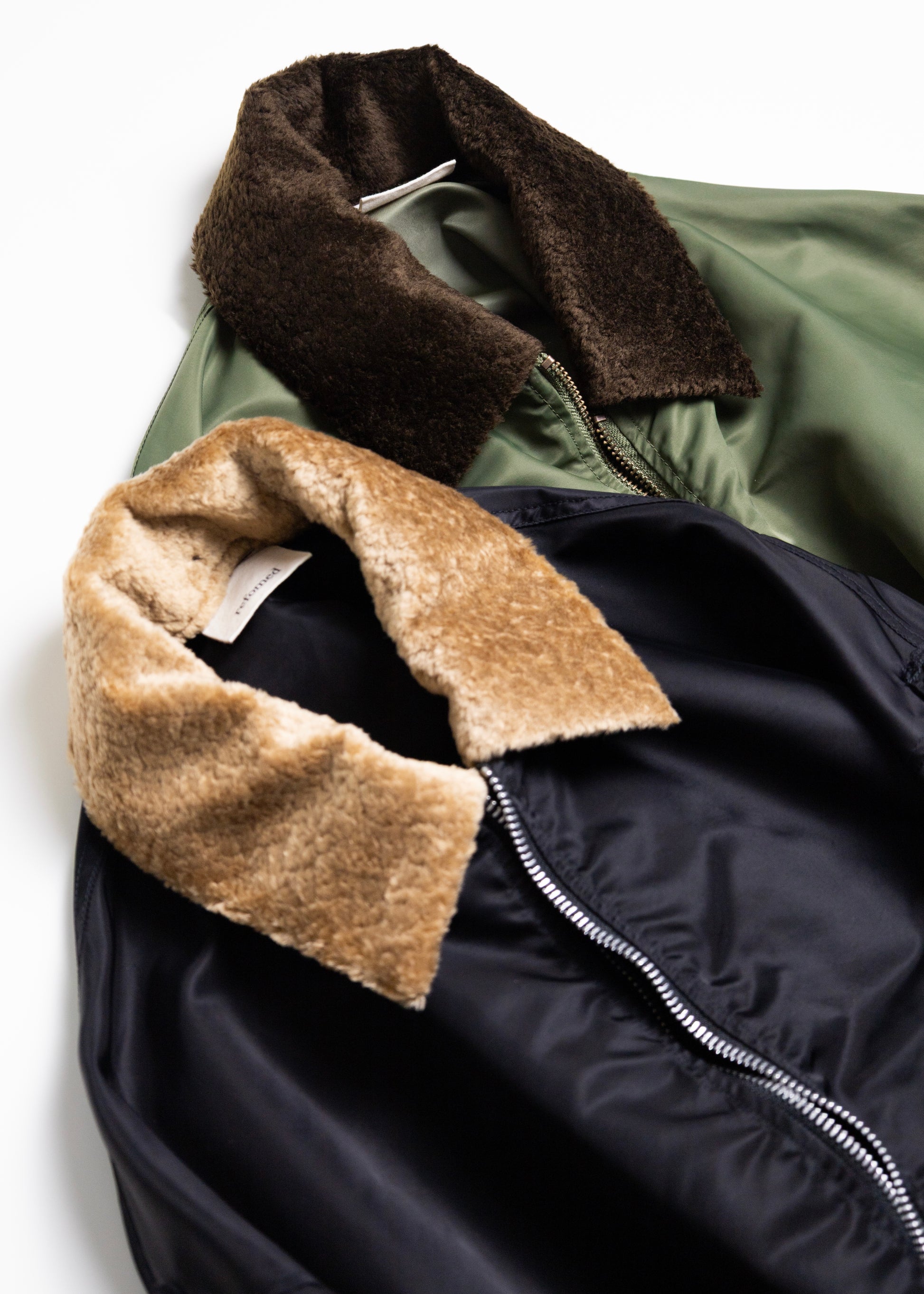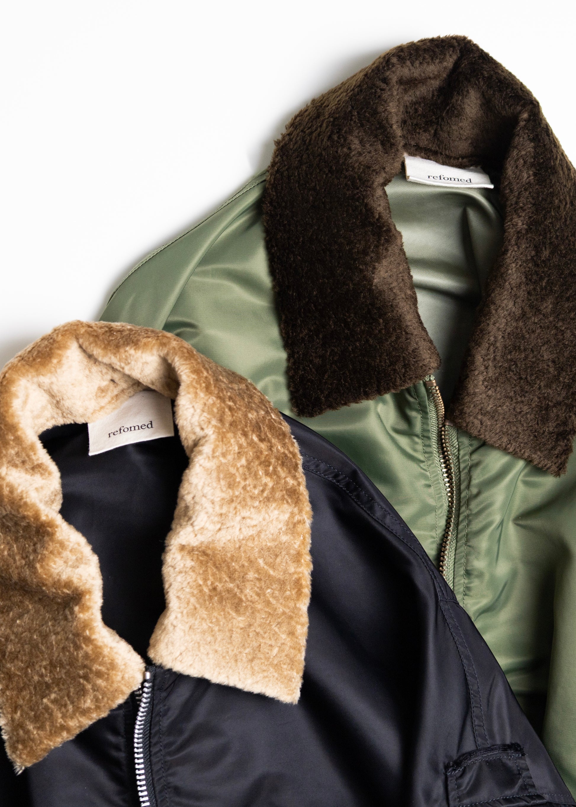 作業現場でよく見られるボアを使用した防寒着から着想を得た"ドカジャン” 商品名のカストロ(ビーバー)は働き者と言う意味もあり、真冬の職人をイメージしています。 生地はリサイクルナイロン糸を使用したツイル素材。 コーティングを施さず、ソフトに仕上げている事が特徴です。製品加工を施し、鈍い光沢が魅力です。