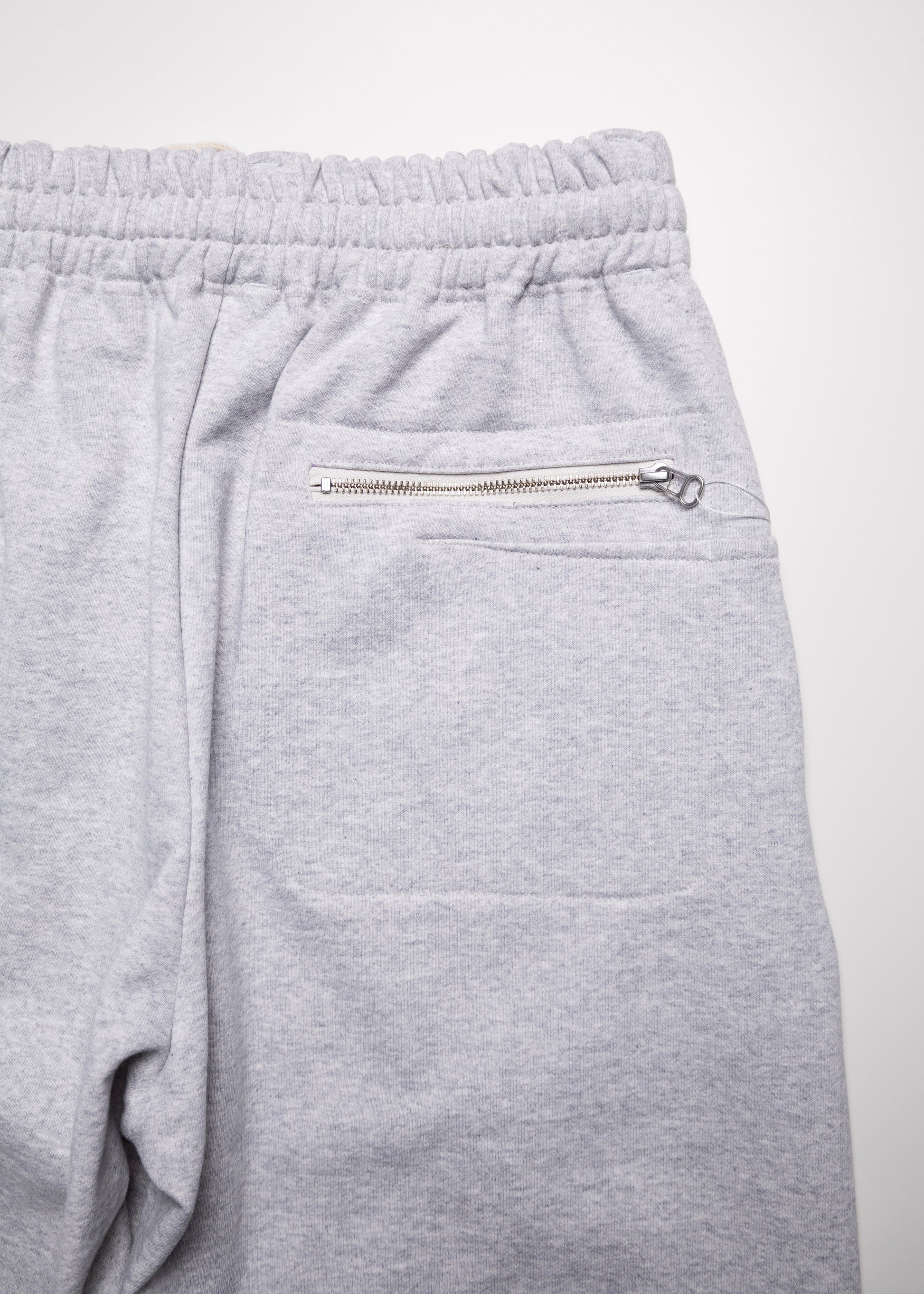 ウエストベルトの折り返しで着用アレンジが可能なスウェットパンツ。ハリ感のある薄手のオリジナル裏毛素材を使用。脇線のないミニマルな構造に、断ち切り仕様の裾とドットボタンを配備し、裾幅の調整が可能。