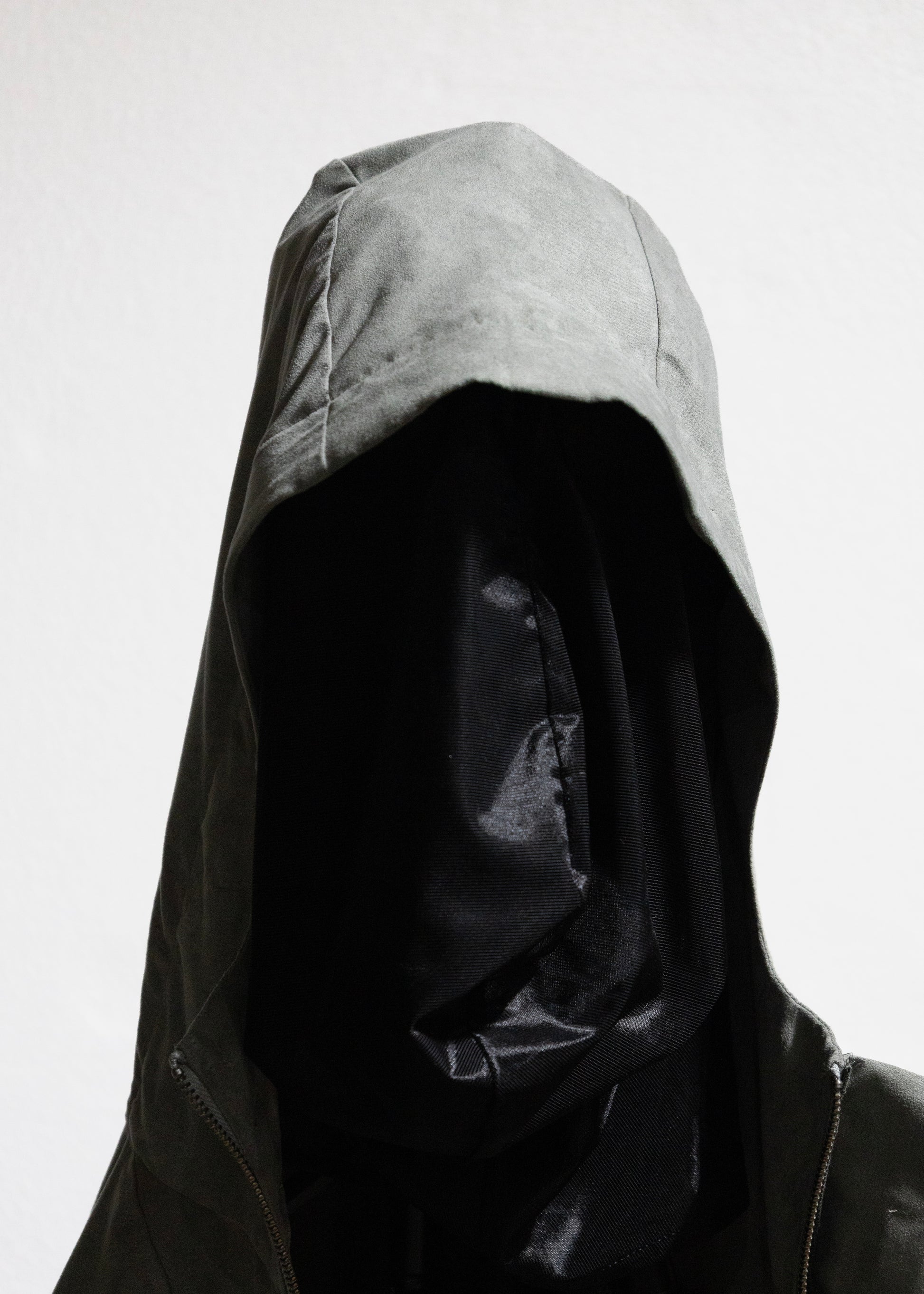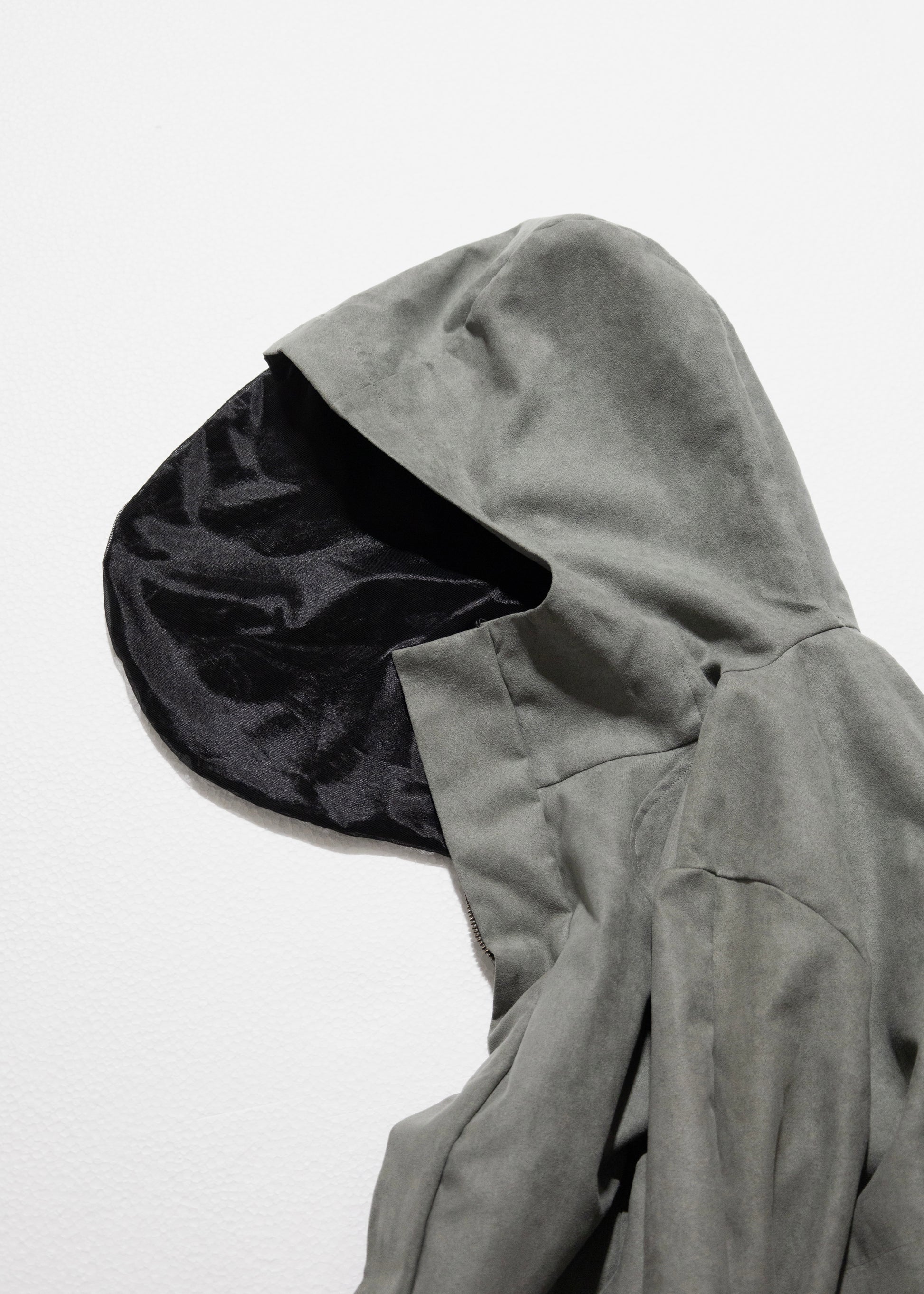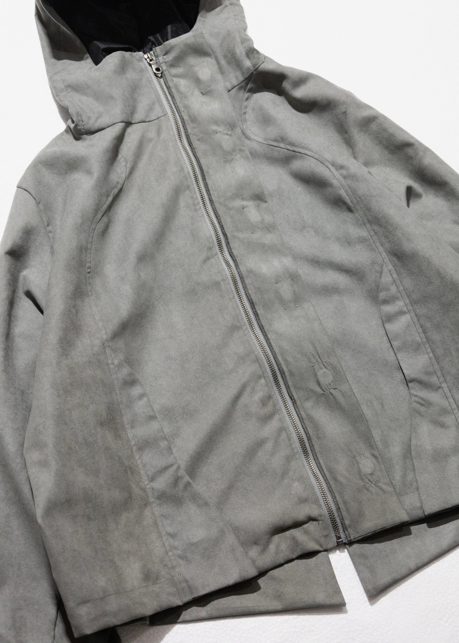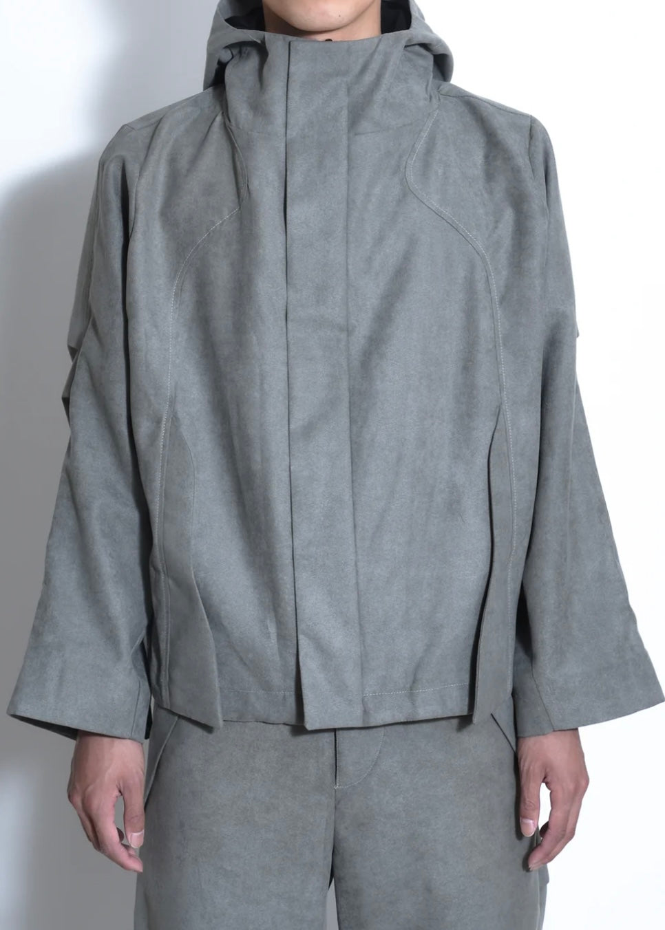 要所にマグネットボタンが使用されており、表裏が別れたフードは顔を覆う事が可能。