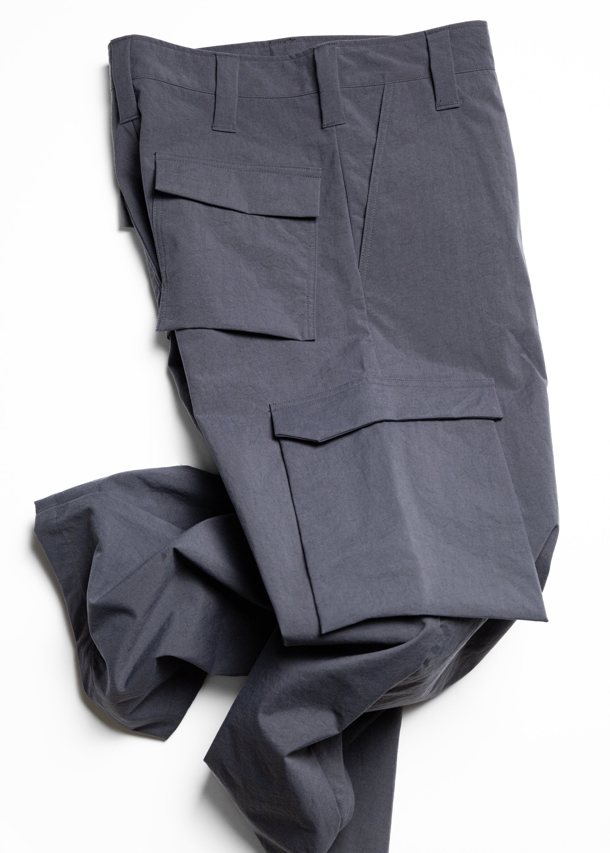 特殊なパターンで独特な膨らみのあるポケットが特徴的なカーゴパンツ。