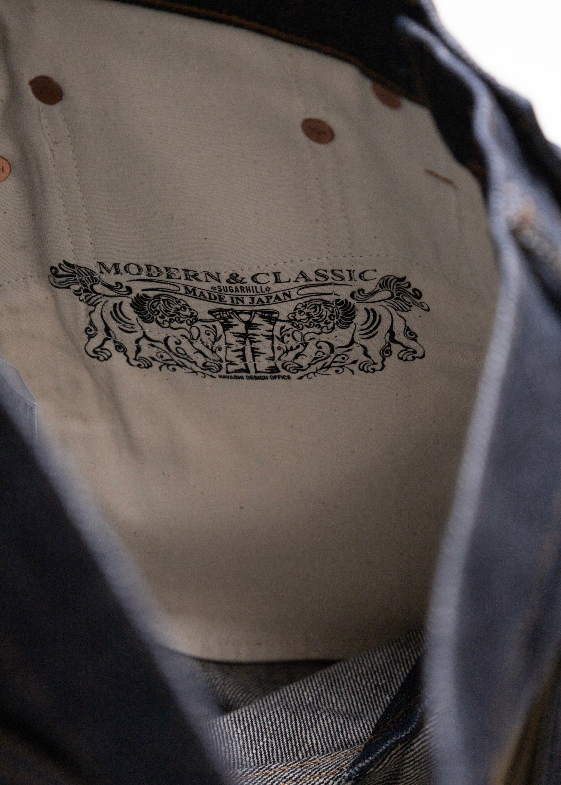 岡山は井原市に本社を構えるクロキ株式会社との協業によって新たに開発された、SUGARHILLオリジナルの左綾デニム”JIMI CLOTH”を使用。