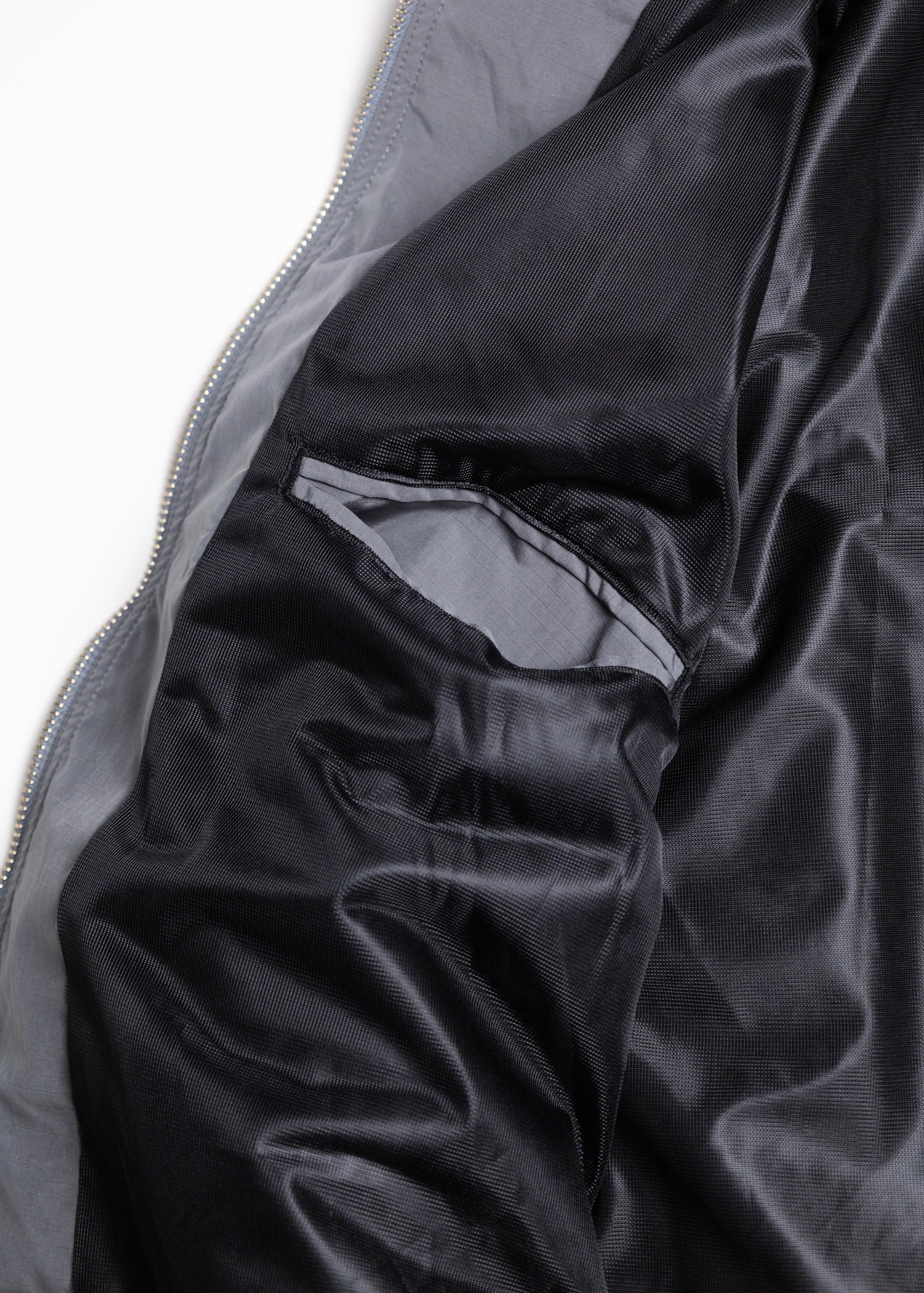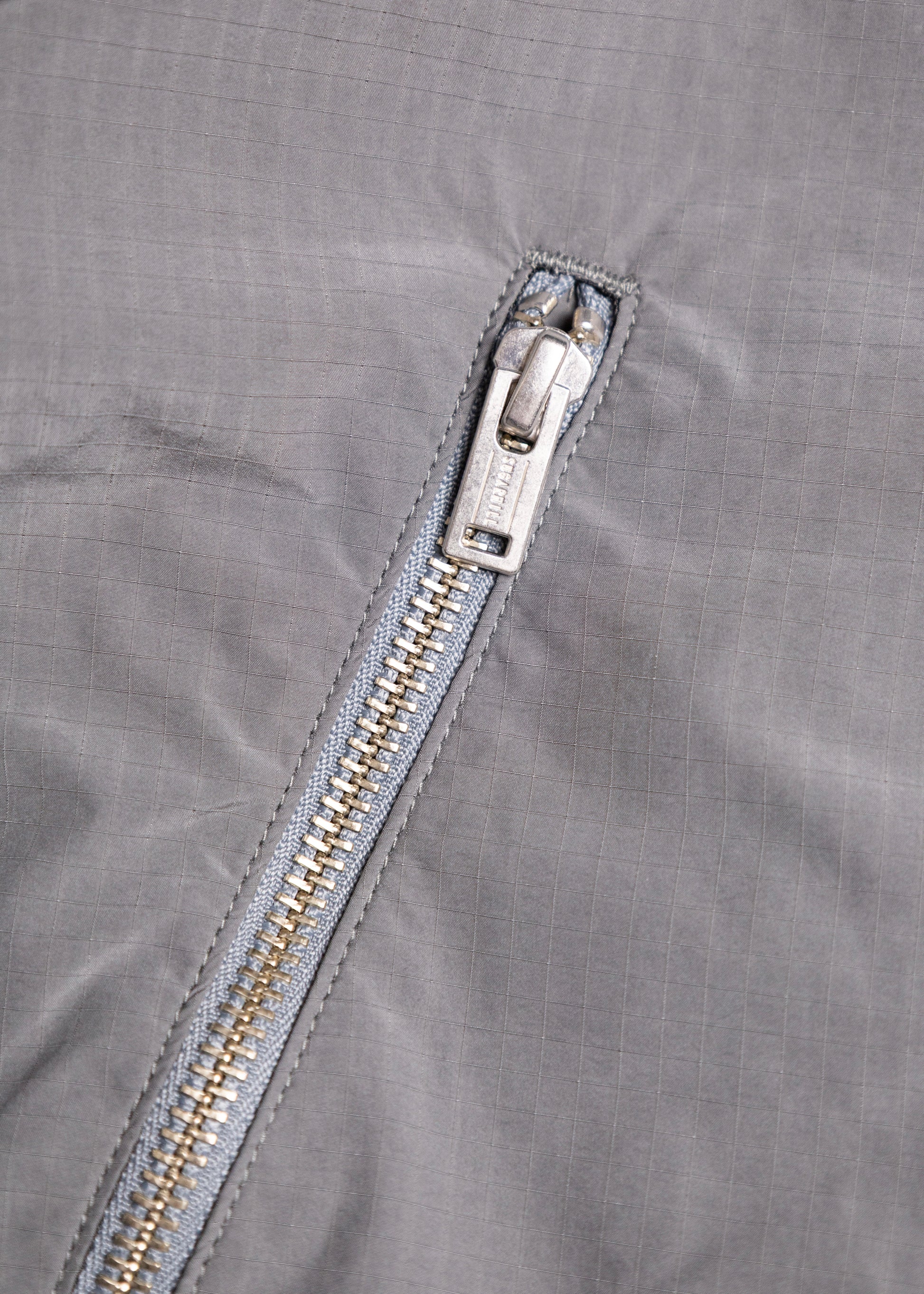 ナイロンリップストップを使用したナイロンジャケット。着丈は少しコンパクトに身幅はゆとりがあるシルエット。