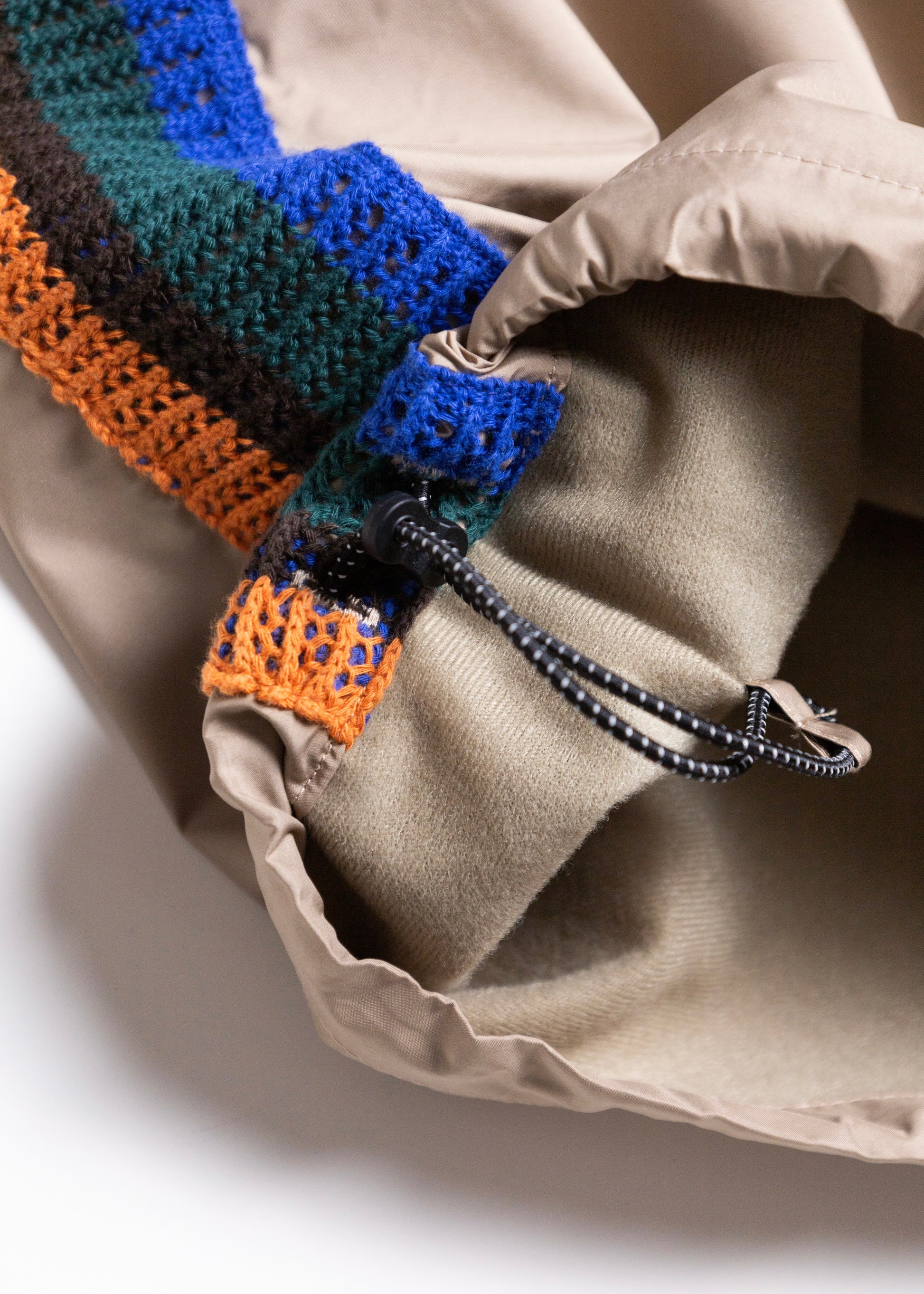 軽さがありながら緻密に織り上げる事で⾼い気密性を保持したエコ素材。裏地は東レのフィールドセンサーを使用(汗の吸⽔、拡散、蒸散機能)トリコット起⽑素材の為、保温性もあります。