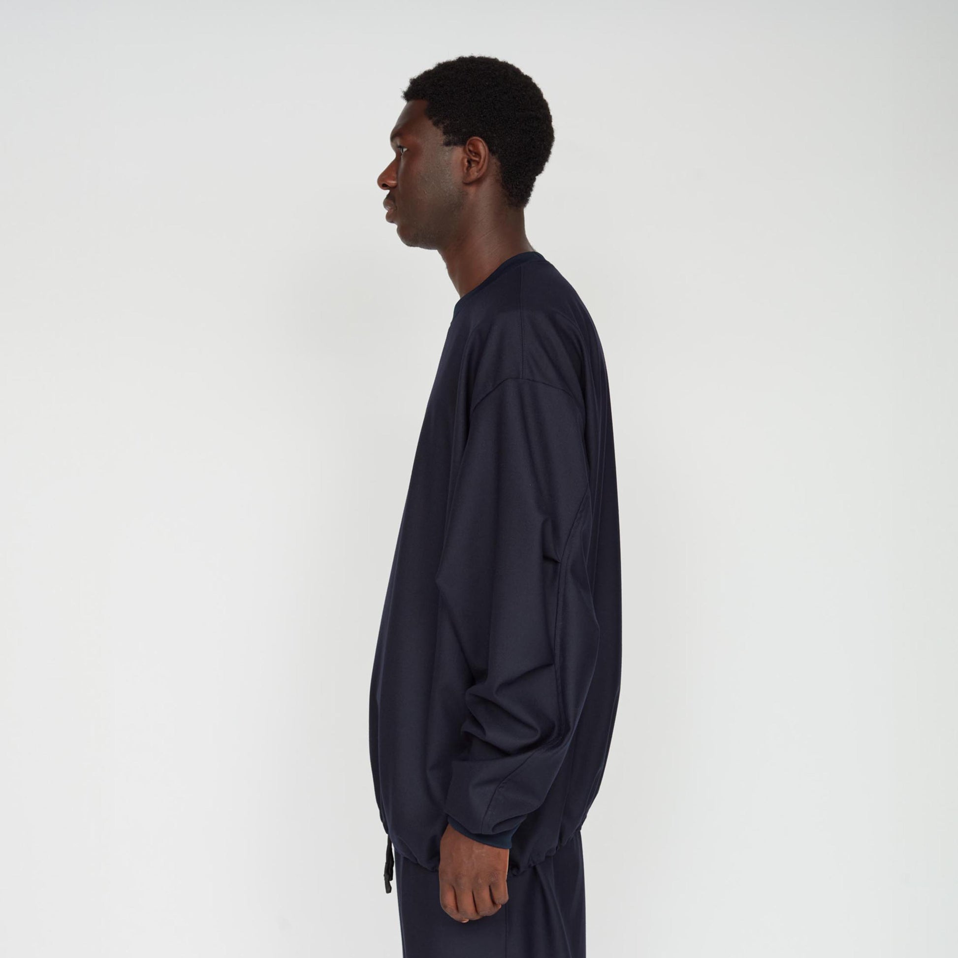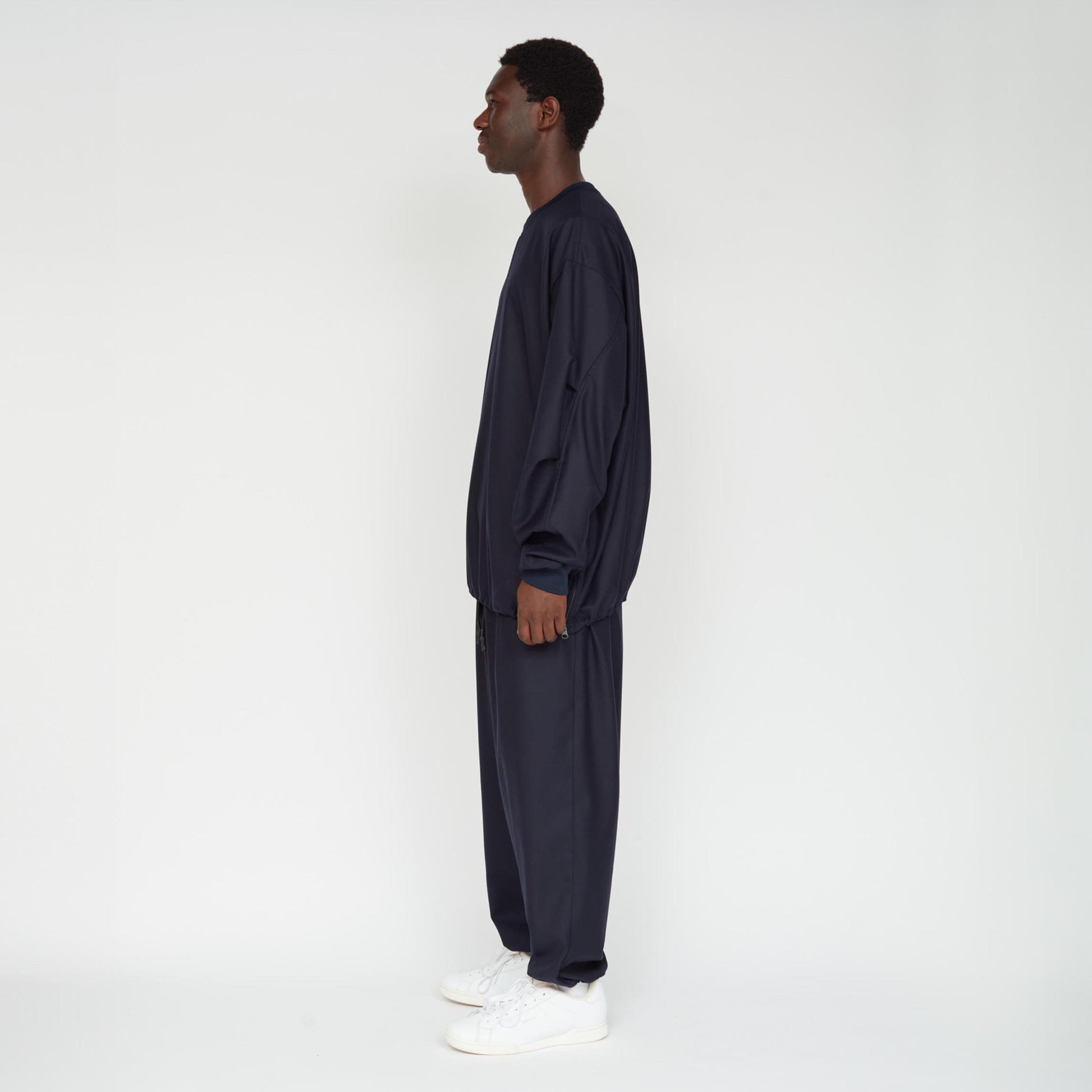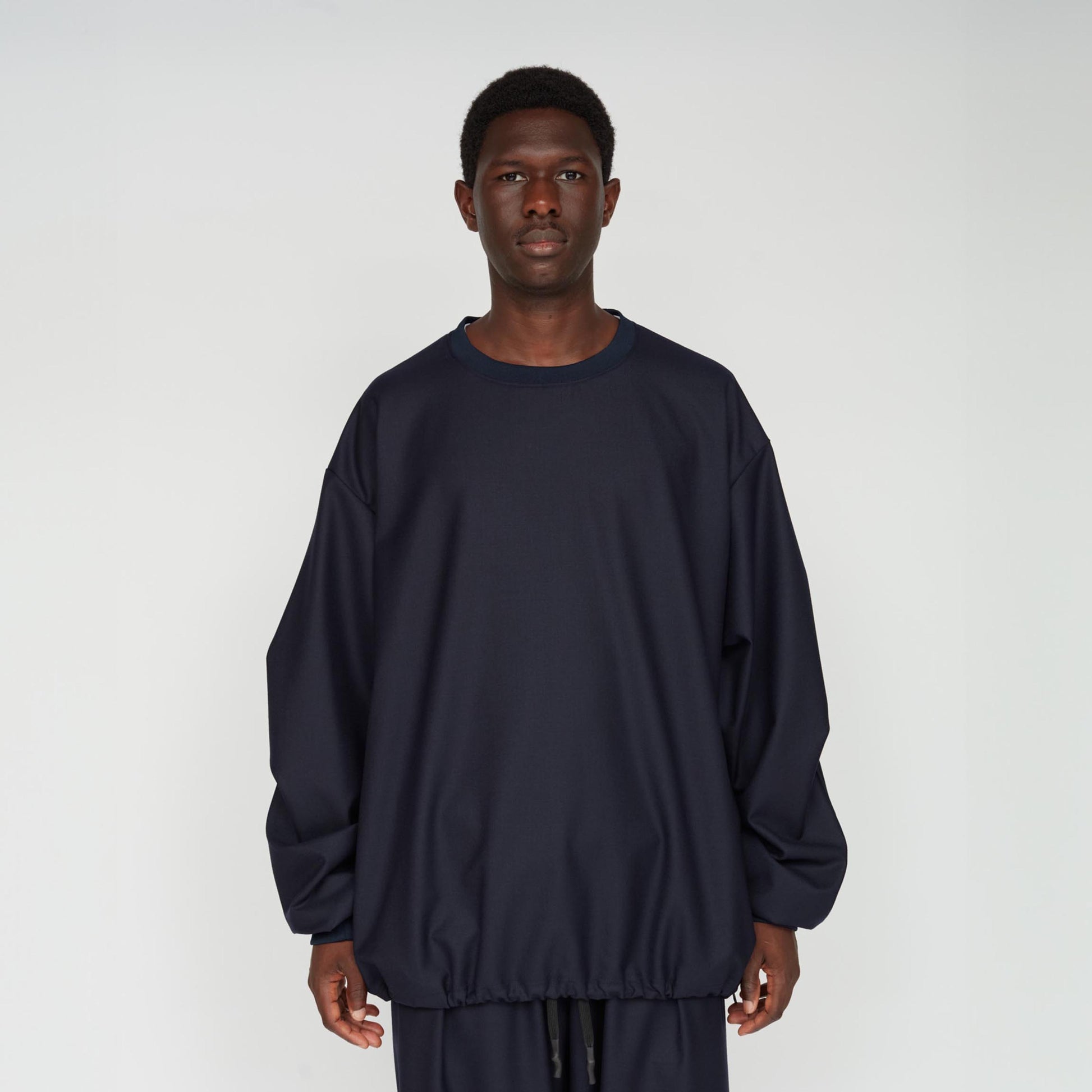 オーストラリア産バージンウールの梳毛とヴィスコースをブレンドした糸で織り上げたウォッシャブル素材を使用し製作した、TPOシリーズの定番スモックシャツ。上品な見栄えの良さとイージーケアを兼ね備え、一枚着としてはもちろんのことミッドレイヤーとしても季節を問わず通年での着用が可能です。アームにはアクションプリーツを配し、 身体を立体的に捉えた構造で仕上げ、裾にはスピンドルを採用しシルエットの変化もお楽しみいただけます。スウェットよりも品が良く、ニットよりもケアが容易な、様々なシーンにフィットする一着です_154のテーパードパンツと同素材でセットアップで着用可能です。